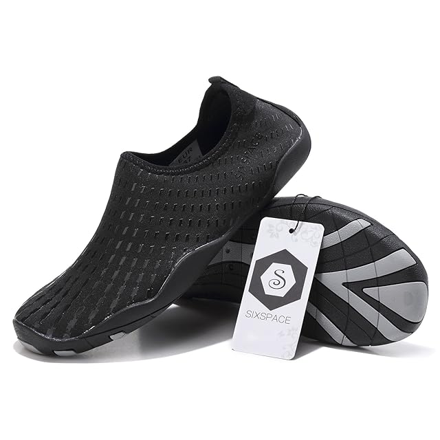 Sixspace マリンシューズ ウォーターシューズ 水陸両用 アクアシューズ シュノーケリング ビーチシューズ 軽量 通気 ヨガ サーフィン 男女兼用 黒 27cm