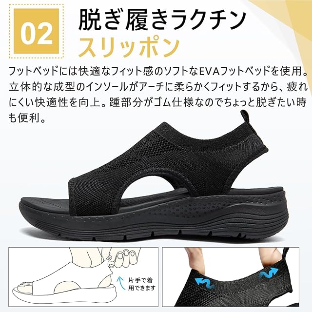 [MERPHINE] スポーツサンダル レディース ニット メッシュ 厚底 オフィス サンダル 夏 通気 軽量ウォーキング 歩きやすいおしゃれ オシャレ