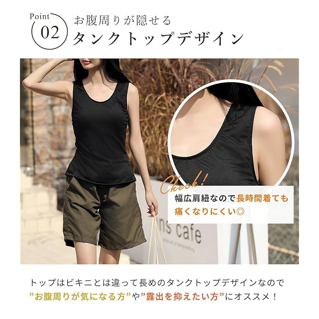 セット内容・4点セット・ビキニ上下(ブラ+ショーツ)・ラッシュガード・パンツ【商品仕様】・ラッシュガード:ジップカバー付き・パンツ:ウエストゴムタイプ パッド有無○ パッドポケット○ ワイヤー× 肩ひも取り外し× 肩ひも調節× アンダー調節× 洋服と変わらないタンキニ水着☆好きな様に着こなして楽しも! タンクトップ ビキニ おしゃれ 紫外線対策