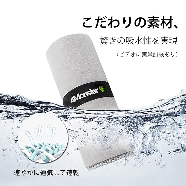 4Monster スポーツタオル アウトドア マイクロファイバー タオル コンパクト 速乾タオル ジムタオル フェイスタオル スイミングタオル 旅行 バスタオル