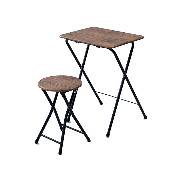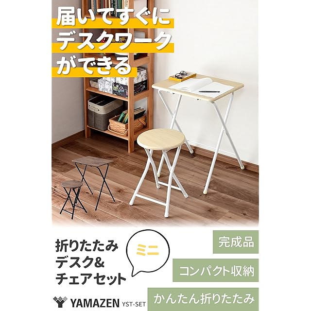 山善(YAMAZEN) 折りたたみ デスク チェアセット 机 (幅50×奥行48×高さ70cm) 椅子 (幅30×奥行30×高さ46cm) 完成品 アンティークブラウン/サンドブラック YST-SET(ABR/SBK) テレワーク