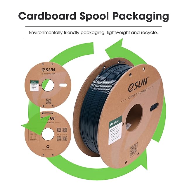 【環境に優しいパッケージ】eSUN PLA Liteは、軽量でリサイクル可能なダンボールスプールのパッケージで設計されており、環境保護をより良くするために使用されています。また、eSUNのフィラメントは密閉された真空バッグと乾燥剤が付属しており、3Dプリンターフィラメントを最適な保存条件で保ち、塵や汚れから守ります。