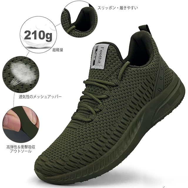 [Feethit] スニーカー メンズ レディース ランニングシューズ 通気 軽量 滑り止 スポーツシューズ スリッポン ジョギング ウォーキング 運動靴 お洒落 旅行 通学 通勤 日常着用 グリーン 24.0cm