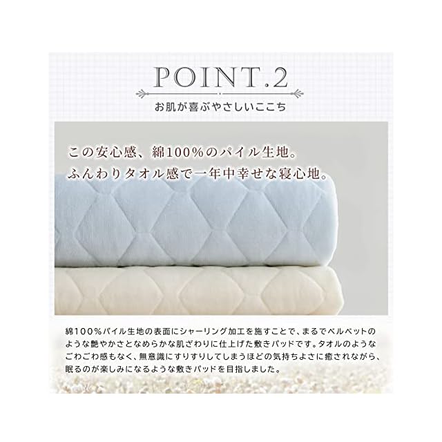 【丸洗いOK!いつも清潔に】ご家庭の洗濯機でマットレスパッドを丸洗いができるので、手軽に清潔な状態を保つことができます。新品時は製造時の繊維くずが付着していることがあるため、初回は洗濯機での洗濯をオススメします。洗濯することで繊維くずが取れ、パイルが立ち上がるので、ふわっと柔らかな手触りになります。【品質】万が一商品に不具合がある場合、弊社にご連絡いただければ迅速に対応いたします。1年間の品質があるから、安心してお買い求め頂けます。