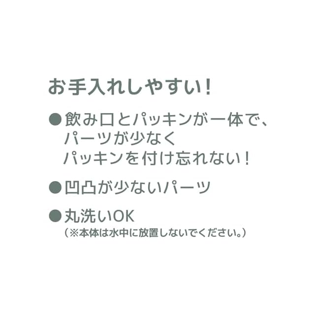 飲み口とパッキンが一体の新構造!付けやすく、外しやすい!