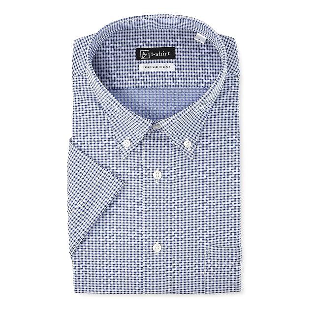 [アイシャツ] i-shirt 完全ノーアイロン ストレッチ 超速乾 レギュラーフィット 半袖 アイシャツ ワイシャツ メンズ ネイビー 半袖ボタンダウン ギンガムチェック M16221000588 M(首回り39cm)