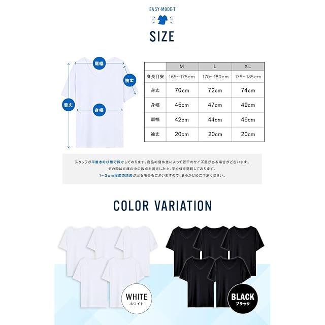 [IGRESS] EASY-MODE-T インナーシャツ メンズ 半袖 肌着 5枚組 Vネック クセになる肌触り (XL, ブラック)