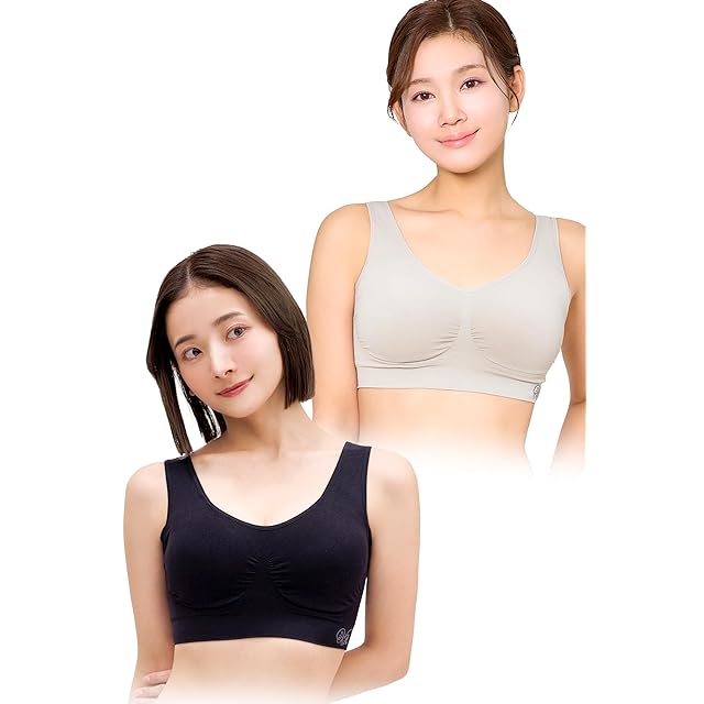 VIAGE (ヴィアージュ) ビューティアップ ナイトブラ 2枚セット (ブラック/ウォームグレー, S) 全6サイズ 脇高設計 ノンワイヤー 背面着圧設計 締付け感なし