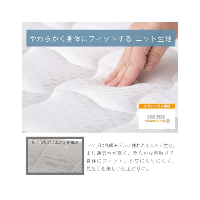 【素材】【表地】ニット生地(ポリエステル100%)【裏面】不織布【内部】ポケットコイルスプリング、不織布・ウレタンフォーム・フェルト