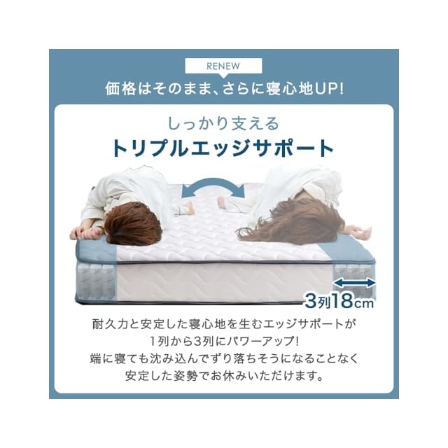 ■しっかり支えるトリプルエッジサポート!超ワイドなトリプルエッジサポートが耐久力と安定した寝心地を生みます。端に寝ても沈み込んでずり落ちそうになることなく、安定した姿勢でお休みいただけます。