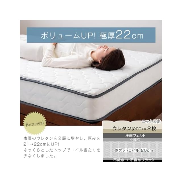 【サイズ】幅97x奥行195x厚み22cm コイル数:528個 重量:約16kg【中国製】