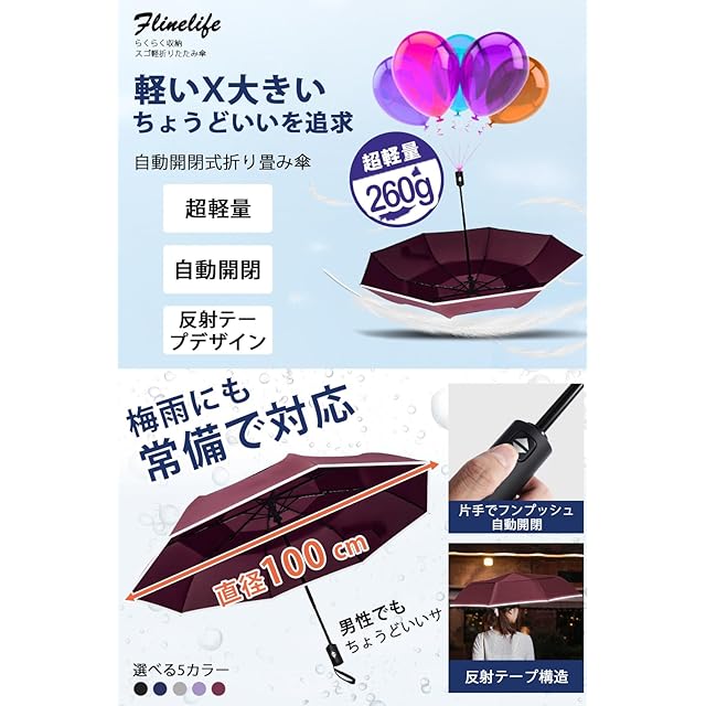 【令和6年新版】折りたたみ傘 ワンタッチ 自動開閉 メンズFlinelife 260g超軽量 8本骨自動開閉 折り畳み傘 おりたたみ メンズ レディース 折りたたみ傘 ワンタッ 撥水速乾 耐強風 男女兼用 携帯しやすい 超吸水傘カバー付き