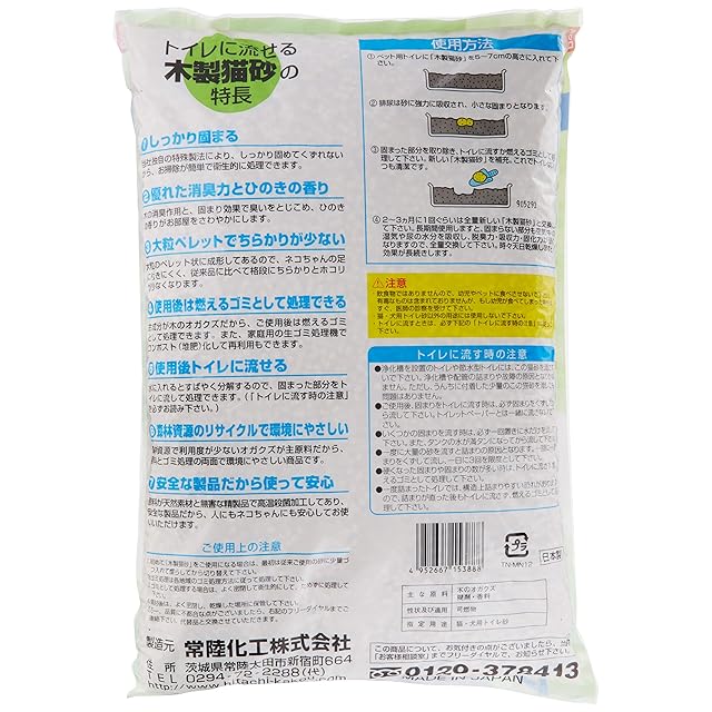 常陸化工 FineCat トイレに流せる木製猫砂 大粒 パワフル消臭 12L 単品