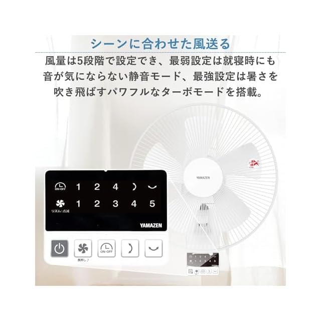 [山善] 壁掛け扇風機 DCモーター搭載 (上下左右立体首振り) (換気/空気循環) (静音モード) (リモコン付き) (風量5段階) (入切タイマー) ホワイト YWRX-BGD305(W)