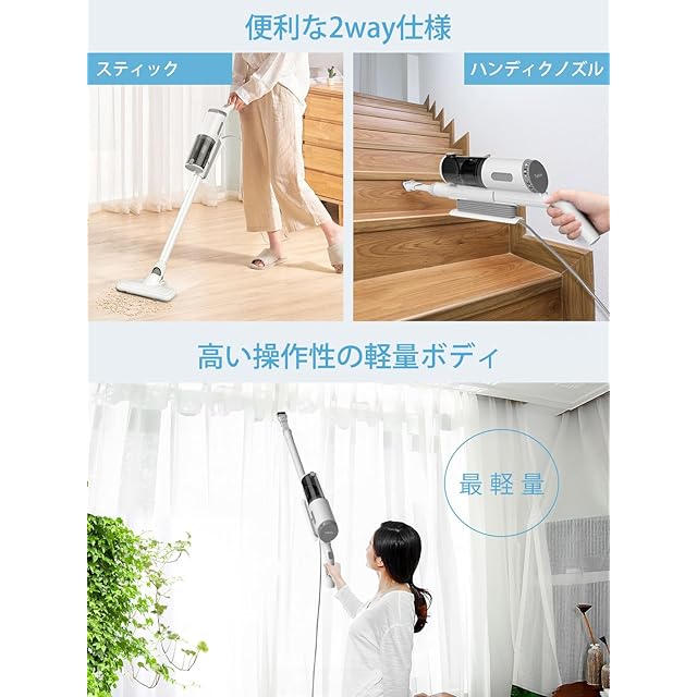 ✅【3点ノズル付き&軽量タイプ&6mコード式掃除機】3種類のノズルが付属しており、布団やソファーなどのファブリックはもちろん、高い場所や車内など、さまざまなシーンで使えます。細かい隙間にまでしっかり掃除することができ、心地よい掃除が実現します。掃除機は人間工学に基づく、2kg以下の軽量設計は女性やお年寄りにも適しており、楽に階段を上り下りできます。持ち運びに便利で、掃除が楽しくなること間違いなし!スティッククリーナーは6mの電源コードが付き、主要な掃除工具として部屋の隅々までのお掃除は十分です。