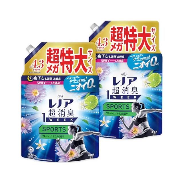 商品名:レノア 超消臭1WEEK 柔軟剤 SPORTS フレッシュシトラス 詰め替え 1,900mL×2袋 【まとめ買い】 [大容量]