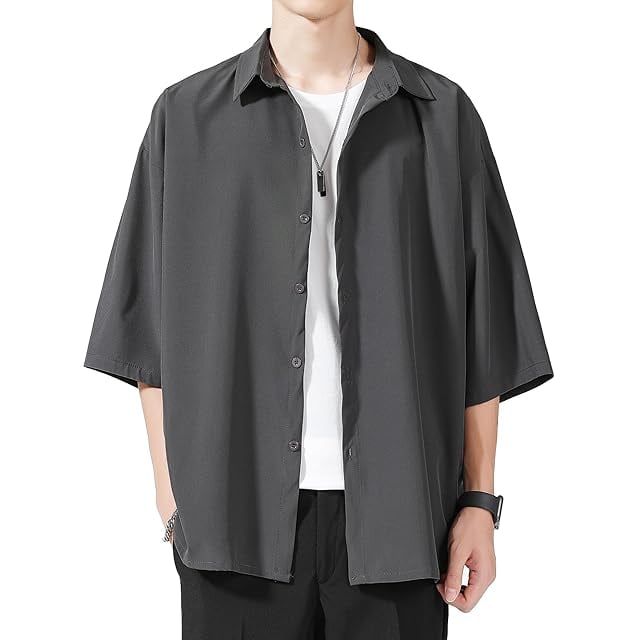 [Culeevp] シャツ メンズ 五分袖 半袖 大きいサイズ 無地 速乾性 柔らかい 軽い 夏服 メンズ tシャツ 灰M